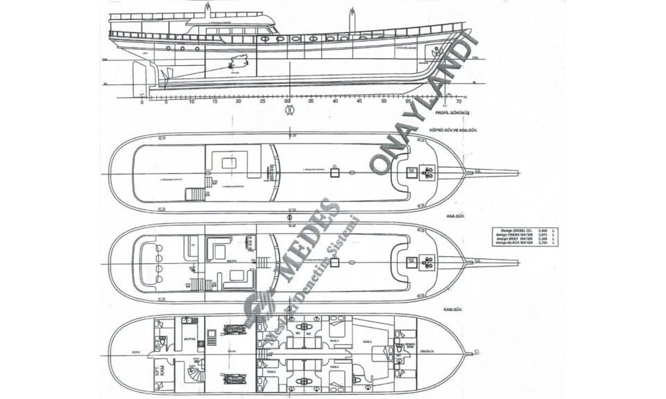 With a cruising speed of 9 knots and a maximum speed of 11 knots, the S/Y LUCE DEL MARE is powered by top-of-the-line engines and generators to ensure a smooth sailing experience. Accompanied by a professional crew of five, including an on-board concierge, your every need will be catered to with utmost care and attention.